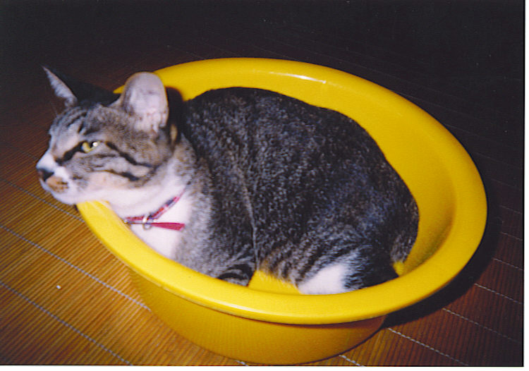 たらいの中に入ったミーちゃん。