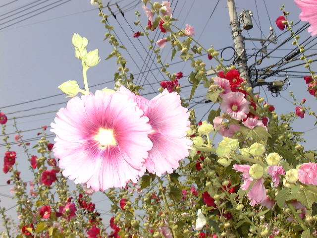 にはタチアオイの花が植えられています!